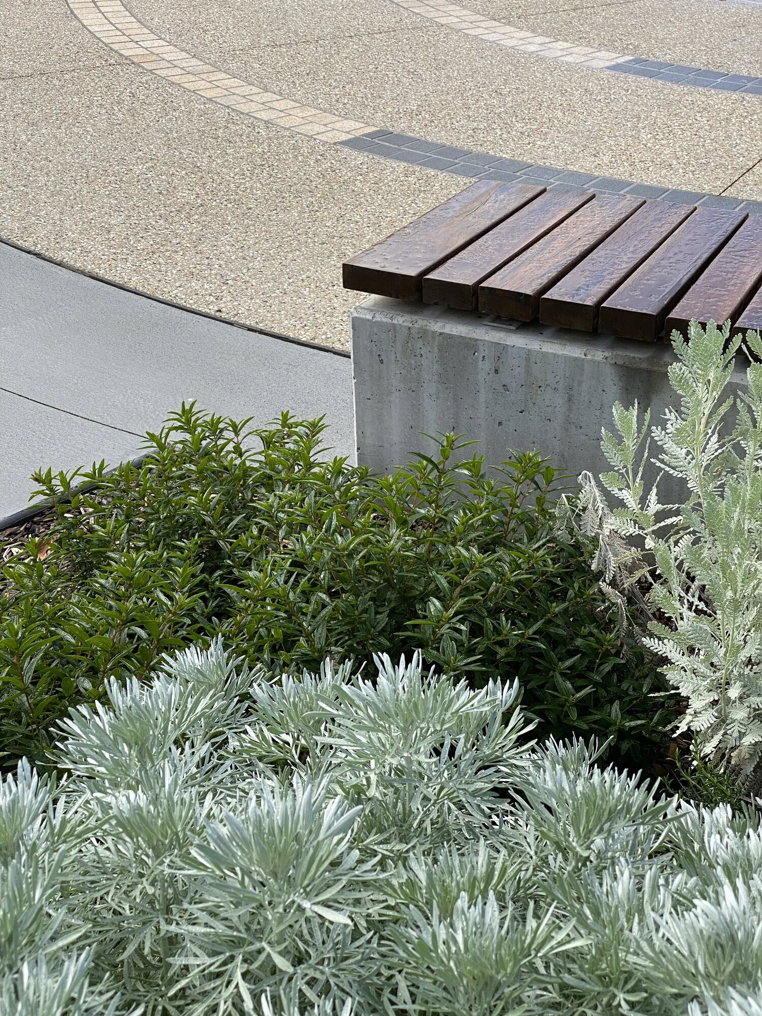 The Charism (spiritual gift) garden forms the main forecourt and entry point for the redeveloped St Patricks building at Catholic College Sale. The garden represents the uniting of Marist and Sion charisms. Elements of these traditions are referenced in the symbols, materials and plant palette of the garden. A central water feature represents the Marist concept of “water from the rock”. More than 80 plant species from Mediterranean Jerusalem, Central France and the indigenous floodplains of Sale make up the different plant communities in the space.