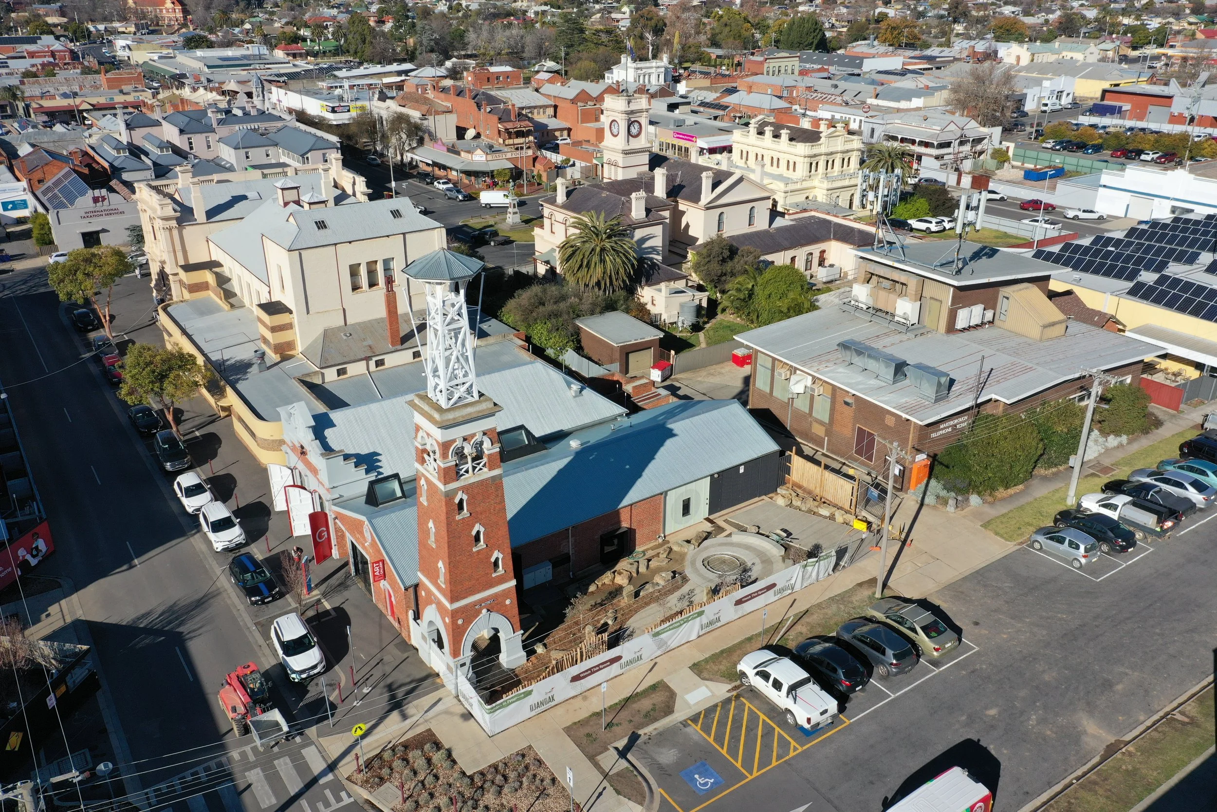It was a pleasure to be invited to assist Djaara in the design and development of an indigenous interpretive garden to complement the redevelopment of Central Goldfields Art Gallery redevelopment by Nervegna Reed Architecture. Located in the historic Maryborough fire station with its iconic fire tower, 3Acres LA worked with a Wartaka knowledge group and Djaara artists to develop ideas for the northern space previously used as a car park. The design includes a meeting area and yarning, an escarpment with rock wells, carved rock basins, artworks representing water and fire and a plant palette drawn from the box ironbark hills of Maryborough.